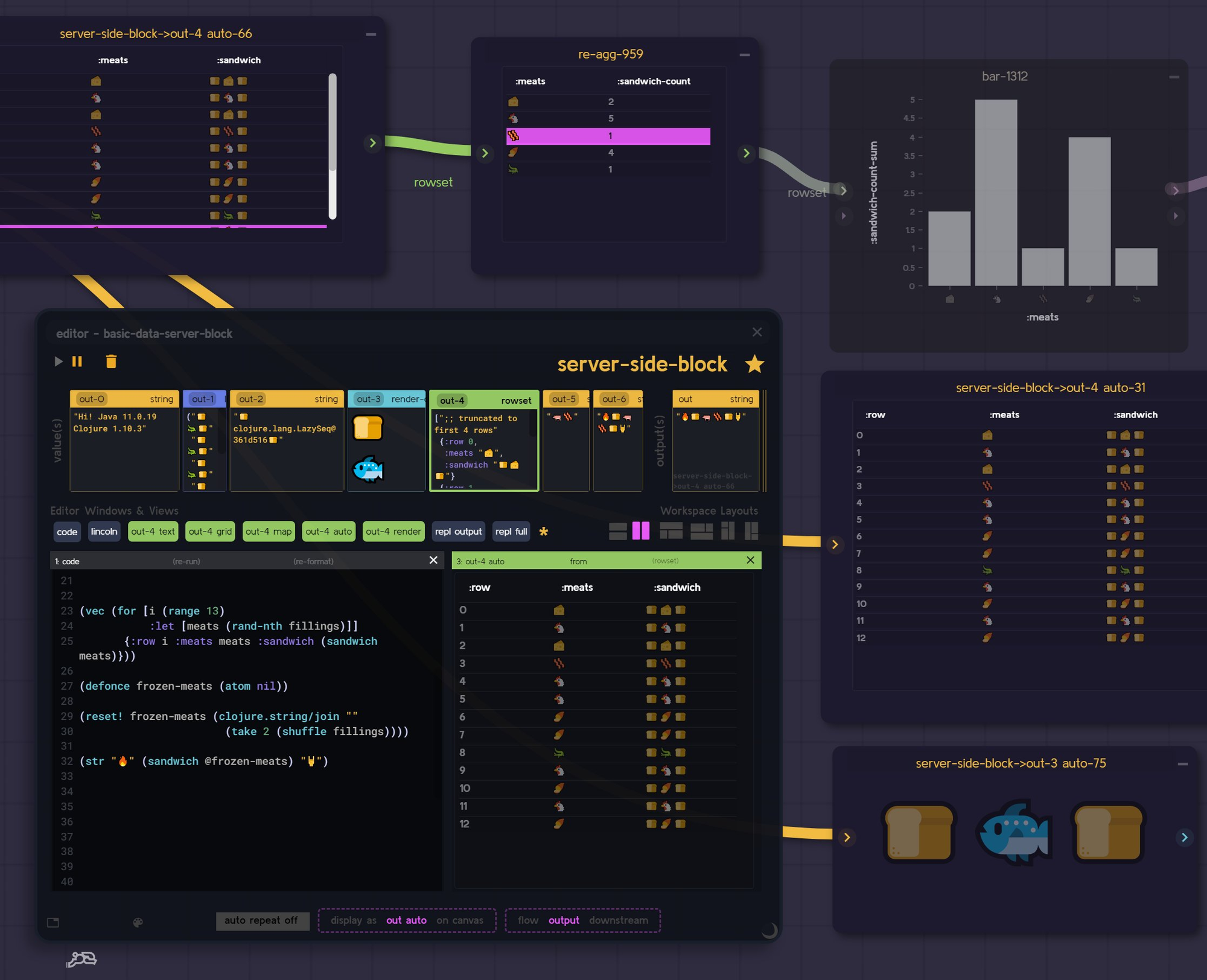 (above from - "Using Data Rabbit as a 'data rich' Clojure REPL")